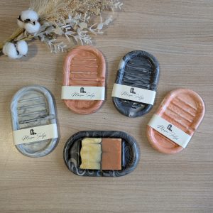 Des pièces uniques avec différents effets (marbré, splash ou terrazzo), fabriquées à la main dans mon atelier, avec une attention particulière portée à chaque détail. Et dans une démarche « zéro déchet », l’effet terrazzo est réalisé avec mes restes de matière de jesmonite.
