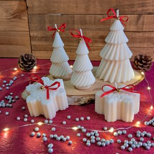 Des bougies coulées à la main, démoulées et retravaillées ensuite pour une belle finition.