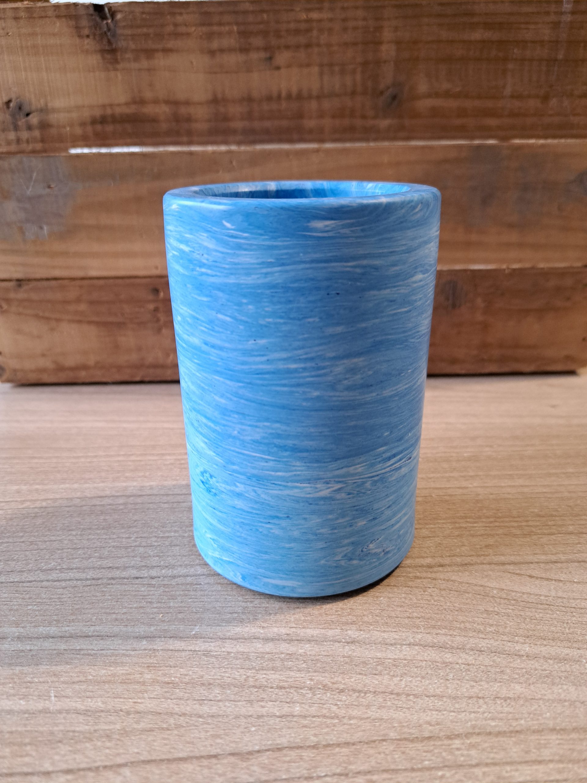 Un joli pot de couleur marbrée qui peut servir de pot à brosses à dents, à pinceaux de maquillage ou même de pot à crayons pour votre bureau.